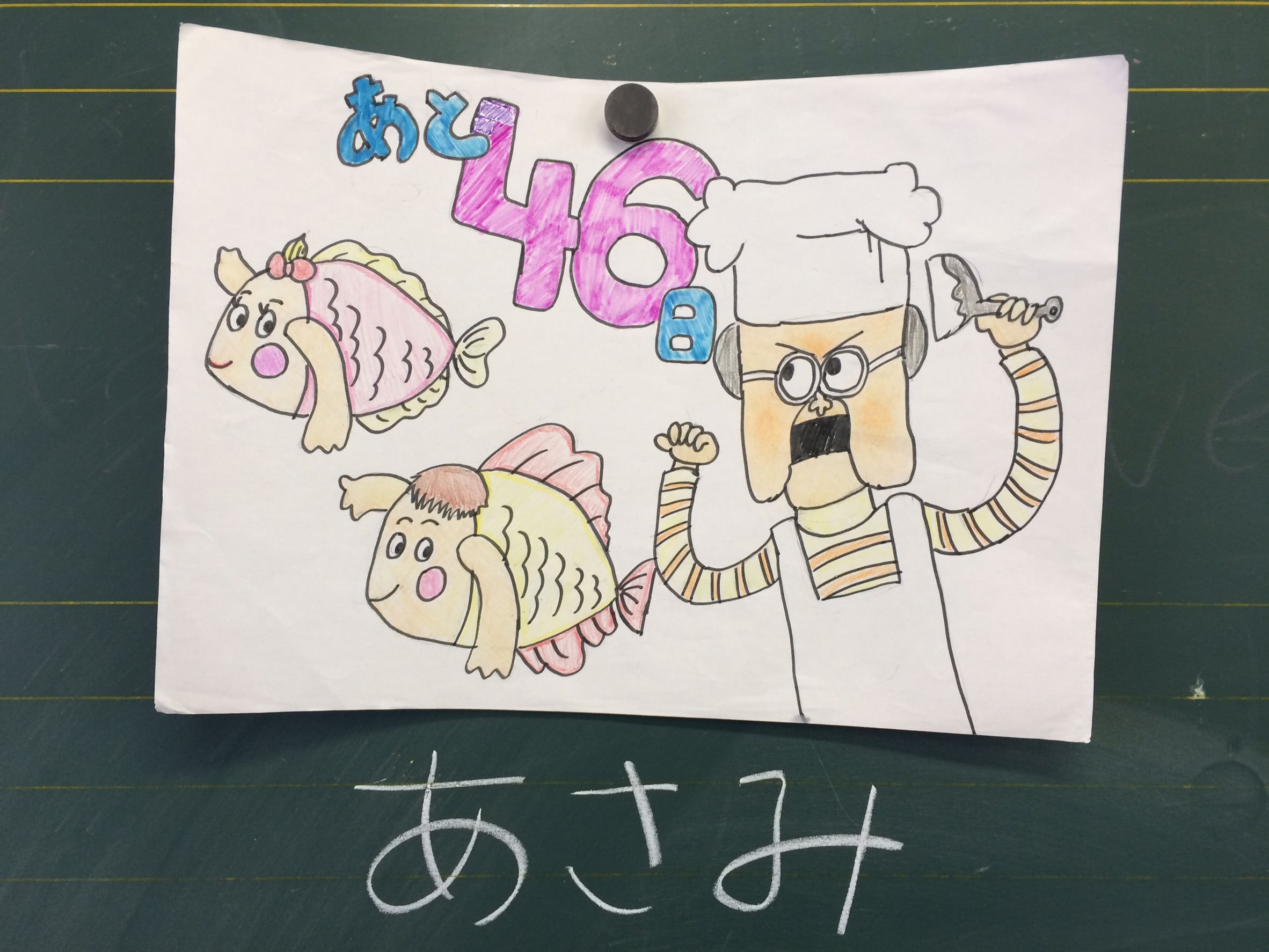 およげたいやきくんをかいてくれました!いつもの画伯とは思えない力作......!というか普通にうまい!