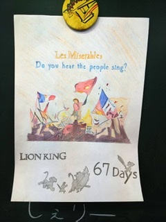 カレンダーはサックスパートのしぇりーが描いてくれました♪3部メインのレ・ミゼラブルと、2部の音楽劇ライオン・キングのハクナマタタのシーンですね、色使いが素敵です♡