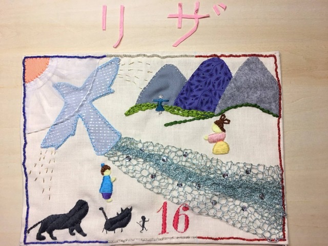 とても綺麗な刺繍ですね、リザはいいお母さんになりそうです!実際に近くで見たかった!